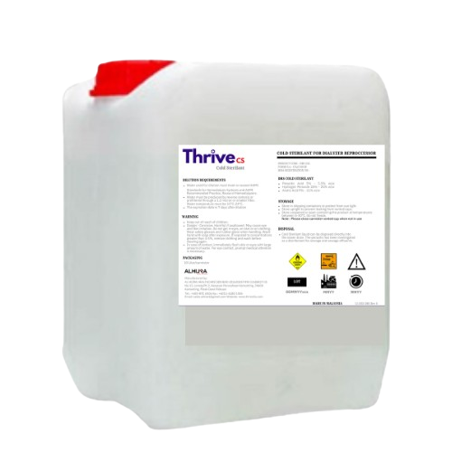ThriveCS Cold Sterilant is an effective sterilant formulated for use after dilution for many applications, for example, high purity water systems, medical and laboratory equipment. It is mostly used in Automatic Dialyzer Reprocessing System.
